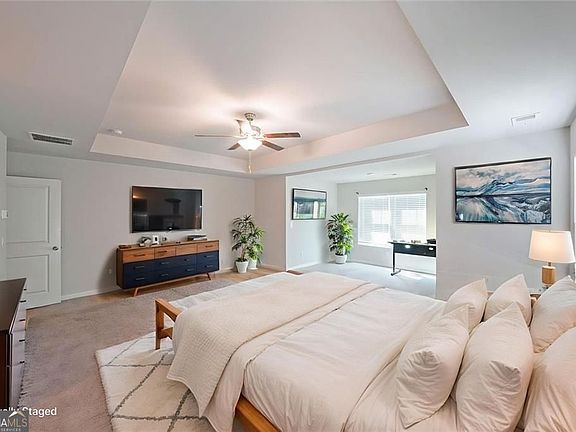 || TWO-STORY HOME || || GOURMET WHITE KITCHEN WITH STONE COUNTER & ISLAND || || OVERSIZED MASTER RETREAT || || LOW-MAINTENANCE BACKYARD WITH GRILLING PATIO || || LAKE COMMUNITY WITH WALKING TRAILS & DOG PARK || ** What You'll See ** Step into a BRIGHT TWO-STORY ENTRYWAY that opens to a flowing layout connecting the kitchen, family room, and dining spaces. Visualize the GOURMET WHITE KITCHEN with its sleek STONE COUNTERTOPS, stainless steel appliances, and large ISLAND perfect for family meals or entertaining friends. Upstairs, the OVERSIZED MASTER RETREAT with tray ceilings and a sprawling WALK-IN CLOSET invites you to unwind in elegance. ** What You'll Hear ** Hear the gentle sizzle from the grilling patio as you cook outdoors, laughter from family gatherings in the fireside FAMILY ROOM, and the soft rustle of leaves from the low-maintenance backyard. Inside, enjoy the calm ambiance and the quiet hum of modern appliances that make this home feel peaceful and welcoming. ** What You'll Feel ** Feel the warmth and comfort of the FIREPLACE in the family room, the smooth touch of stone countertops as you prepare meals, and the plush carpet underfoot in bedrooms and loft spaces. Sense the spaciousness and airy flow of the open layout, and the tranquility of your private backyard retreat. ** What You'll Experience ** Experience everyday convenience paired with luxury morning coffee in the sunlit kitchen, cozy evenings by the fire, and weekends spent exploring walking trails or playing with pets at the dog park. Create lasting memories in a home designed for both relaxation and entertaining, all while enjoying the easy-care lifestyle of a meticulously maintained yard.