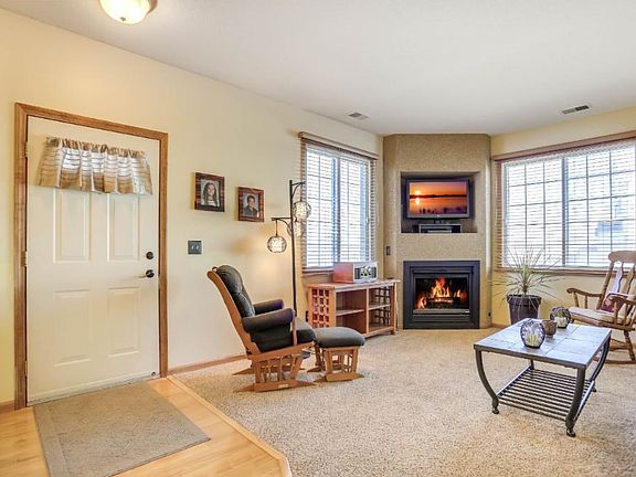 RARE 3 bedroom end unit w/ views of the pond across the street. All bedrooms are on one level including an upper level laundry. Huge Master bedroom w/ a large walk in closet & a walkthrough to the bathroom. Bathroom has space for dual vanities. Cozy gas fireplace in the living room & laminate flooring throughout the living room & dining room. The kitchen has a breakfast bar, tile flooring & backsplash, stainless appliances & oil rubbed bronze handles. Walking distance to K-5 schools & shopping.