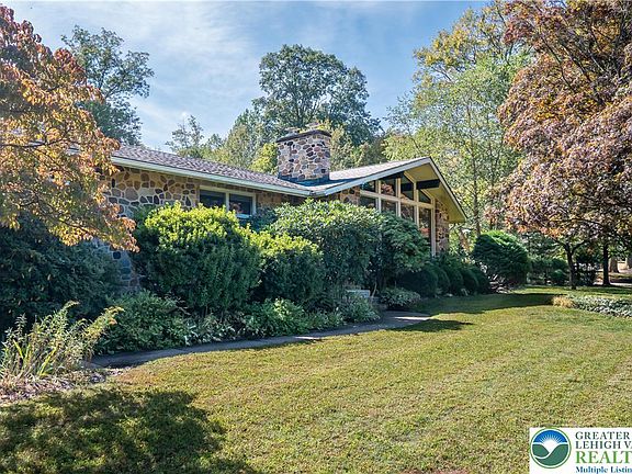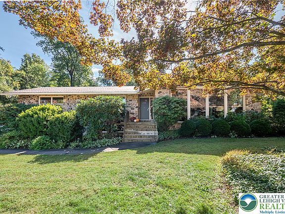 Timeless mid-century design meets serene country living in this STONE RANCH, gracefully set in UPPER BUCKS COUNTY. Inspired by the CLIFF MAY aesthetic and reimagined by a LEHIGH VALLEY ARCHITECT, the home is designed to celebrate light, texture, and flow. A striking SUNKEN FAMILY ROOM anchors the main level, highlighted by a FLOOR-TO-CEILING STONE FIREPLACE and an EXPANSIVE WALL OF WINDOWS that invite natural light across clean architectural lines. A step up leads to the dining room and a CHEF’S KITCHEN that blends function with artistry—HIGH-END APPLIANCES, GENEROUS PREP SURFACES, WET BAR ACCESS, and EASY CONNECTION TO PATIOS for effortless entertaining. The FIRST-FLOOR PRIMARY SUITE has been refreshed with modern finishes; TWO ADDITIONAL BEDROOMS and a FULL HALL BATH complete this level. The FINISHED LOWER LEVEL extends the living space with a FLEXIBLE OFFICE (BUILT-INS), FITNESS AREA, and a SECOND STONE FIREPLACE, plus LAUNDRY, POWDER ROOM, and convenient access to the TWO-CAR GARAGE. Outdoors, a FENCED YARD offers TWO COVERED SEATING/DINING AREAS and a LARGE STORAGE SHED. Minutes to Hellertown and I-78 access, shopping, and dining—MID-CENTURY CHARACTER with THOUGHTFUL DESIGN and a strong CONNECTION to the NATURAL LANDSCAPE.