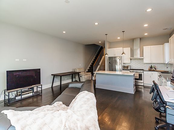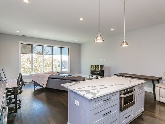 Stunning Top-Floor Penthouse in the Heart of Booming Pilsen! Welcome to your dream home in one of Chicago's most vibrant neighborhoods! This bright and elegant 3 bed, 2 bath penthouse spans 1,500 sqft and features an interior staircase to a private rooftop deck with breathtaking 360 views-including sweeping panoramas of the iconic Chicago skyline. Enjoy luxury city living with an open-concept layout showcasing a spacious living room and a chef-inspired kitchen with a large island and professional-grade stainless steel appliances. The primary suite boasts a generous walk-in closet and a spa-like bath complete with an oversized walk-in shower, dual vanity, and porcelain tile finishes. Additional highlights include:Expansive rear deck for grilling and entertaining;10-foot ceilings and 7' solid-core doors throughout;Rich hardwood floors;In-unit laundry;Garage parking included. Unbeatable location-just minutes to downtown, public transit, acclaimed restaurants, and all that Pilsen has to offer. This is city living at its finest! Don't miss your opportunity to own a skyline view!