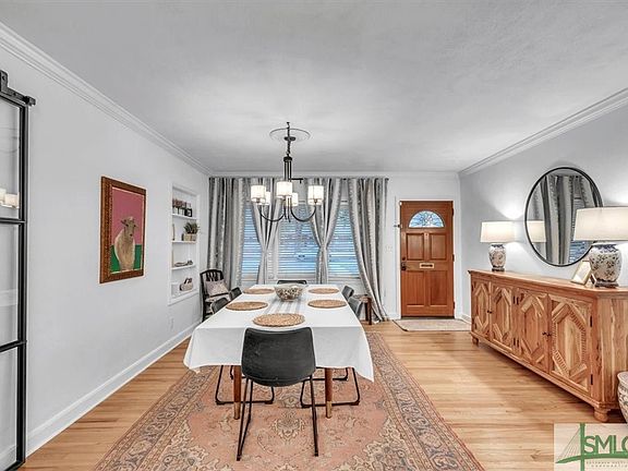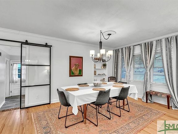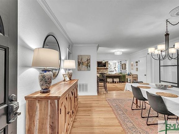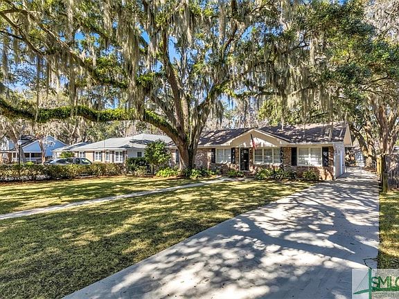 Located on a picturesque, Live Oak tree laden street, this beautiful brick ranch is well maintained and turn-key. Spacious, open floor plan welcomes you inside to refinished, light hardwood floors, upgraded light fixtures, and comforting wall colors. You'll encounter not one, but two potential dining spaces, and kitchen with gas stove and stainless steel appliances. A large den on the rear of the home features recessed lighting, brick fireplace and glass shelved built-ins. Plentiful storage, with multiple large closets and large pantry. Bonus room with added glass entry door leaves potential for game room/office space and has adjacent laundry room. 3 bedrooms and 2 full baths adorn the opposite side of the home. Primary has ensuite with walk-in shower. Backyard and covered carport space are perfect for entertaining, with both grill and garden spaces, Edison lights overhead, and an outdoor television. The workshop features electrical, storage shelving, and an outside area for firewood.