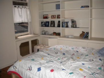 Sunny, open apartment with hardwood floors. Working fireplace. Huge closet in bedroom could be an office or dressing room. Bedroom also has a wall of built in shelves and cabinets designed by mid-century architect, Louis Kahn. Kitchen has ceramic tile floors and dishwasher. Available June 1 or earlier in May if desired. Owner pays for heat and water. Tenant pays for electricity and gas for the range.