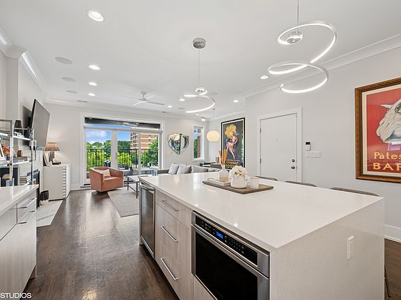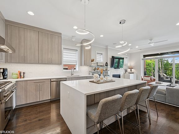 A meticulously maintained three bedroom, 2 bath condo located in the Heart of Wicker Park. Step inside and be instantly impressed by the high end elegant design. High ceilings throughout, an extra deep lot and neutral tones create a warm and inviting atmosphere. A gourmet kitchen includes custom cabinetry with ample storage, sleek quartz countertops with a waterfall-edge island, and top-of-the-line Thermador appliances. The spacious main living area soaks in natural light and centers around a beautiful fireplace. Oversized sliding doors open to a terrace complete with a ceiling fan and natural gas line. Grilling and hosting made easy. The luxurious primary suite features a custom walk-in closet and gorgeous bathing room including heated floors, steam shower and separate soaking tub. The unit also offers two additional bedrooms with built out closets, in unit washer dryer, great hallway closet space, high end remote window treatments in the kitchen/living space, garage parking and 6'x 8' additional storage space. Move right in and enjoy all Wicker Park has to offer. Steps from renowned dining, shopping, nightlife and a weekly Farmer's Market (seasonal). Easy access to public transportation.