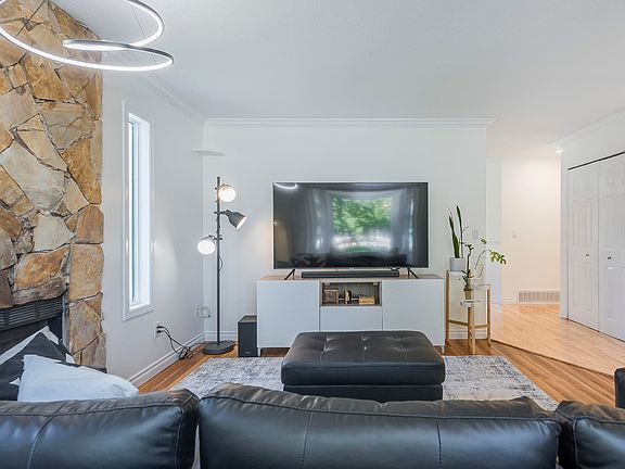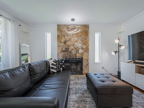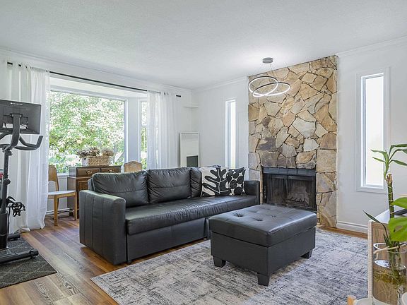 Bay windowCozy wood-burning fireplaceUpdated kitchenEating barDining areaBright family roomVaulted ceilings