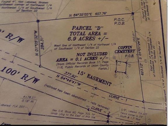 6.9 acres in Union County between Raiford and Lake Butler. Lots of wild life to be viewed . This parcel has no deed restrictions, manufactured homes or site built allowed plus farm animals are allowed on this parcel. There is a small 60 by 60 fenced cemetery on the right side just inside the border of the parcel not part of the property based on the legal description. Per the online flood maps The Land is in a 100 year flood zone A designation expect about 1.25 acres but no elevation survey has been done . No special requirements by the county for access to the cemetery other than a 15ft easement that can be allowed any where since the county mows and maintains the cemetery. You can fence the lot off just allow access for maintenance and family to view upon request . There are very little restrictions in this county but do your do diligence my information is just estimates and not guaranteed . Owner is a licensed real estate broker.