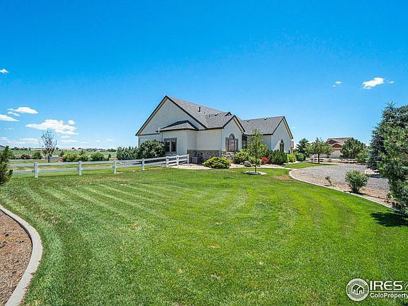 Welcome to this beautiful ranch-style home situated in the peaceful and family-friendly town of Eaton, just approximately 1 mile to the east side of town. This 3-bedroom bath ranch with over 3100 total square feet. Boasting Oak hardwood floors throughout, knotty alder trim, doors, and cabinetry along with granite counter tops and all stainless-steel appliances. Open floor plan into the living room with gas fireplace inviting for guests and entertaining. Separated primary bedroom for privacy with 5-piece bath with jetted tub and w/I closet. Full unfinished basement to grow into along with an oversized side load 3 car garage. The back yard has a wonderful covered and large patio area perfect for the summer BBQ's. The back yard has a 8200 gallon koi pond able to sustain fish to enjoy year-round. There are also 6 concrete raised garden beds perfect for the growing season along a large tool shed nearby for the storage of all the yard gear needed. Finally, a newer heated outbuilding approximately 42'x40' matching the residential exterior. The building has a poured 6" concrete floor with rebar and mesh along with 2-14'x12' doors with openers. One side is dedicated for the storage of RV/ Trailer and has its own water hookup, electrical hookups inside and outside, and a sewage dump for the RV/Trailer. The other side is a great shop area with built in cabinets/work area along with a half bath, and an area with currently a car parking lift (EXCLUDED). You can do the same or add to your wish list. Also has an additional upper area of approximately 300 square feet of office or storage area.