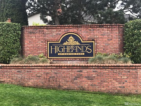 Meticulously maintained one owner home in the coveted Highlands at Canyon Park. Wide open vaulted entry with beautiful hardwood floors! New carpet & paint! Bright kitchen with great flow & large eating area adjacent to family room & slider to rear deck. French doors to large office. Formal living & dining room, laundry room with wash tub. 4 beds with large master and 5 piece bath with corner soaking tub & walkin closet. Great angles, wide spaces, lots of light and a huge 726 sq ft 3 car garage!