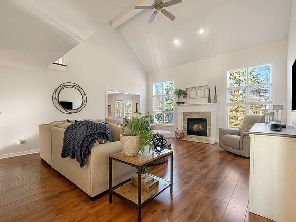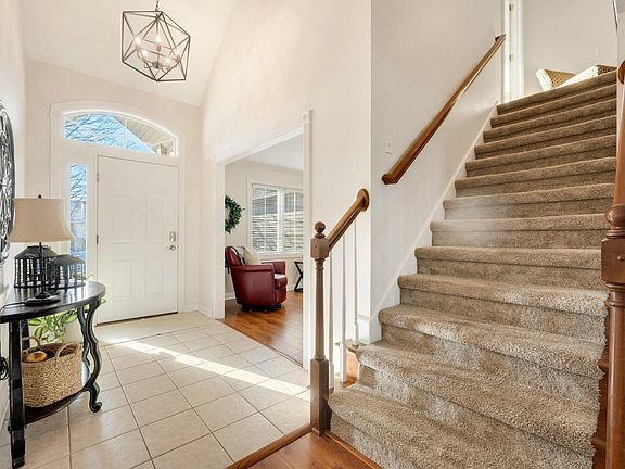 This is an immaculate 4-5 bedroom, 3.5 bath home with a 3 car garage including pull down attic access. It is located on a quiet cul-de-sac lot. This house features vaulted ceilings with a catwalk overlooking the main floor. The master bedroom is located on the main floor which includes an ensuite with a jetted tub and connecting large walk in master closet. There are 3 bedrooms and a full bath upstairs. One of the bedrooms has a large walk-in closet and another features a vaulted ceiling. The large kitchen offers an eat at peninsula that fits 3 bar stools along with a large breakfast area. All kitchen appliances stay. The large, finished basement has a full bath, another potential bedroom/playroom and a huge open rec area. There is also a large storage room that contains the mechanicals. The house has a private backyard that includes a swim spa that stays with the house. The roof was replaced in 2013 and the furnace and AC were replaced in 2023. The fireplace was replaced in 2020. The house has been recently painted. There is literally nothing to do except move in.