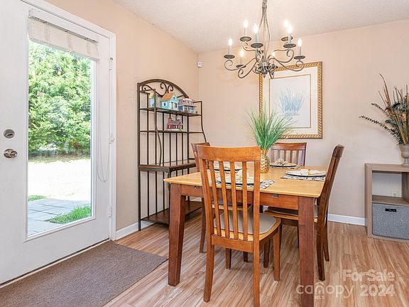 WATCH VIRTUAL TOUR! Cozy home tucked behind the trees less than 2 miles from incredible local shops & restaurants of Downtown Waxhaw. Curb appeal draws you into a nature oasis. Mature trees create tons of privacy for both living room & primary bedroom upstairs. Beveled glass front door welcomes you into main floor w/ vinyl plank flooring throughout. Open living room flows to bright dining area. Tons of windows flood entire home w/ natural light. Open kitchen has gray cabinets & backsplash + white appliances & another bright window. Fully carpeted upstairs starts w/ large loft area perfect for home office area. Primary bedroom has attached full bath including vanity area. Primary bedroom + 2 guest rooms all have walk-in closets for plenty of space. Full hall bath ideal for family or guests. Backyard patio overlooks beautiful yard lined w/ privacy trees + stunning rose bush & is perfect for grilling and enjoying cool evenings when you're not walking to town for dinner!