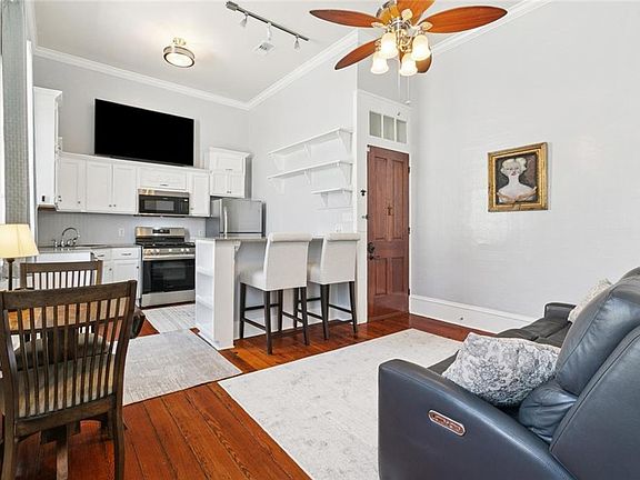 This charming 1-bedroom condo with a sunroom invites you to slow down and savor the beauty of New Orleans living. Sunlight pours through tall windows, dancing across the rich hardwood floors and filling every corner with warmth. High ceilings create a sense of openness, while the bedroom offers cozy comfort and smart storage with dual closets and overhead space.