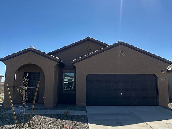 Beautiful NEW Home in PRIME San Tan Valley location, close proximity to Queen Creek and other major cities. QUICK MOVE IN! Prime North/South exposure lot overlooking scenic desert views. Featuring countless upgrades such as 9' ceilings, Shaw Ceramic Tile Floors, Granite countertops in the kitchen. GE Stainless steel appliances and white cabinetry. Energy-efficient features throughout, Wi-Fi & programmable thermostat, and electric range. Spacious walk-in closet in owner's suite! Front yard landscaping with irrigation included and generous covered patio in the backyard. Minutes from hiking trails and scenic mountain views! Fantastic proposed amenities include community lake, parcourse stations, bike loops and racks, ramadas, shaded play structures, great park area including large community pavilion, BBQ grills, picnic tables, pickleball court, cornhole, horseshoes and open space areas. Located near Queen Creek, highly rated schools and easy access to shopping centers, dining options and entertainment venues.