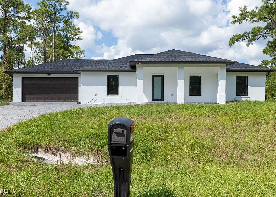 Brand-new modern single-family home featuring 3 bedrooms and 2 bathrooms on a spacious 0.5-acre lot in Alva. This new construction offers an open-concept layout with a designer kitchen that includes beautiful countertops, soft-close cabinets, and stainless steel appliances. The owner’s suite boasts a walk-in closet and a private bath with a tiled walk-in shower. Additional highlights include a split-bedroom floor plan, an interior laundry room with a washer and dryer included, and an attached 2-car garage. The oversized lot provides ample space for a pool, workshop, or RV/boat parking— all with NO HOA or deed restrictions.