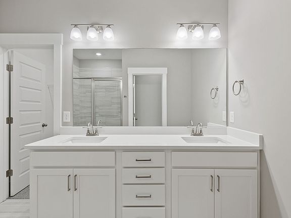 This 2-bed, 2-bath, 1,576 sq ft all-brick home in The Paddock at Kennesaw Farms offers modern comfort with thoughtful design. The open kitchen features quartz countertops, upgraded cabinetry, a designer tile backsplash, and stainless appliances, opening to a spacious dining and living area with a gas fireplace. Durable laminate flooring enhances the main living spaces, while plush carpet and tile add comfort and style to bedrooms and baths. The primary suite includes a soaking tub, tiled shower, and dual vanities, while the second bedroom and full bath provide convenience and flexibility. Board & batten accents, neutral paint, and upgraded finishes add designer appeal. A 2-car front-entry garage completes the home. The Paddock community includes lawn maintenance, irrigation, and amenities for easy living, all near Station Camp schools, shopping, and commuter routes. Ask about our available builder incentives!