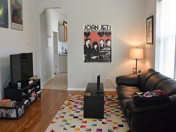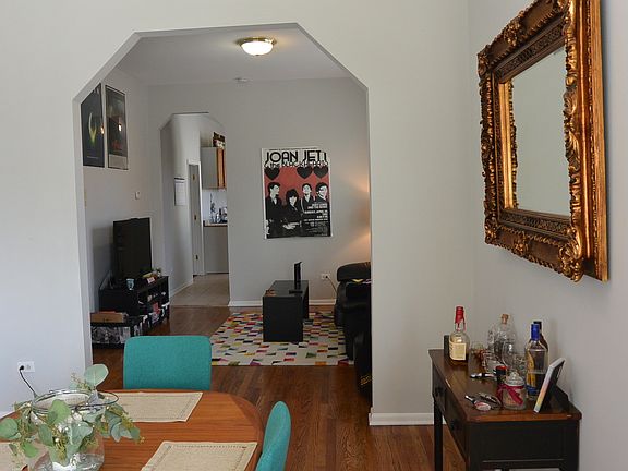 Classic Logan Square greystone 6 unit apartment building. Large 2 bedroom plus small 3rd bedroom or den, 1 bath - high first floor front apartment with large windows, separate dining & living rooms, great ceiling height. Central A/C & heat. Large kitchen with gas stove, bathroom with tub/shower. Original hardwood floors add charm. Big windows flood apartment with natural light. Bedrooms fit full size beds, one bedroom fits a queen. Coin laundry (4 machines) in basement & large storage closet included. Transportation options include CTA California blue line nearby; Armitage & California CTA buses; entrance/exit for I-90/94 (5 min drive).