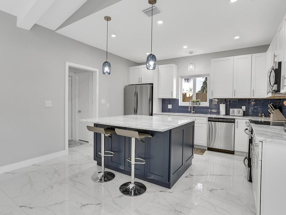 Welcome to your dream boating oasis! This stunning waterfront home features 4 bedrooms, 2 bathrooms, and a garage. With all the upgrades and space you've been looking for, this property is sure to impress. As you step inside, you'll be greeted by soaring high volume cathedral ceilings in the fireplace living room and dining area. The open concept kitchen is a chef's delight with light blues, grays, and white quartz countertops, white shaker cabinetry, and top-of-the-line stainless steel appliances. The primary bedroom suite is a true retreat with a secluded courtyard, perfect for enjoying your morning coffee. The spa-inspired bathroom features a soaking tub, shower, and double vanity. Step outside to your beautiful backyard with a heated pool and 50 foot boat dock, and 75 feet of waterfrontage, Close to shopping and nightlife This listing is a courtesy of LoKation x Eric S Targan Disclaimer: All information is deemed reliable but not guaranteed. All properties are subject to prior sale, change, or withdrawal. Neither listing broker(s) or information provider(s) shall be responsible for any typographical errors, misinformation, or misprints and shall be held totally harmless.
