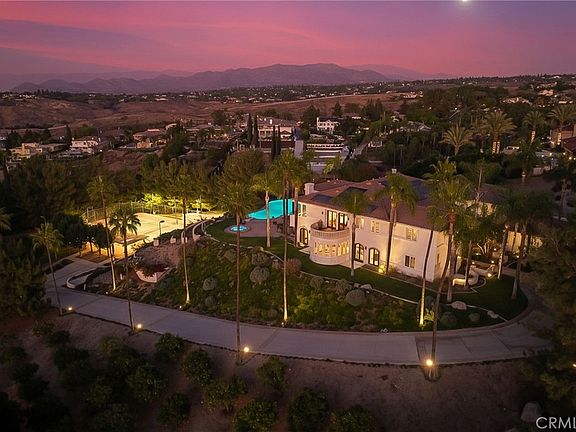 ALESSANDRO HEIGHTS- ROYAL HUNT RIDGE ESTATES- Set upon the highest elevation within the gates of Royal Hunt Ridge Estates, one of the most desirable and exclusive neighborhoods of Riverside is this remarkable hilltop estate. Recently and completely reimagined by the renowned design team of Romero and Obeji; Originally designed by Bill Davis and constructed by Neil Hansen, this incredible property offers the utmost in hospitable living. Evoking Romance Architectural styling utilizing elements of Early California Spanish Revival design with subtle contemporary flair; the Expansive Foyer, Grand Room and Formal Dining Room are ideal for entertaining on an elaborate scale; The informal living center enveloping the immense kitchen affords more intimate family gathering. The spacious home theater complete with balcony provides the perfect escape for movie night or viewing the big game! The front stair at the rear of the foyer winds to the second level landing providing access to the primary suite where exists the perfect retreat from a hectic lifestyle; Restful bedroom space and sitting room with private terrace; Spa quality primary bath with a large barrier free shower, freestanding tub and rejuvenating dry sauna; A dream closet made to make organization simple with efficient custom built-ins throughout; Two private stairs connect the primary suite to the theater and the pool/spa areas. Four additional large family bedrooms, each with a private ensuite bath and walk-in closet, a large laundry room and a craft room complete the upper level. A back stair connects the secondary bedrooms to the kitchen area. Main level guest quarters off the foyer also with ensuite bath and private entrance to the pool makes for a total of 6 bedrooms suites. There is also an exercise room with mirrored walls rubber gym flooring for sound and a full bath; The grounds live like a 5-star resort with the massive vanishing edge pool, separate spa, summer house with built-in barbecue, fireplace and cabana bath; Lower lever recreation has with lit regulation tennis court, shuffle board court and lawn volley-ball. Privately secured and gated driveway, with ample off-street parking in the motor-court; an oversized 4-car garage; Extensive Orchard of Naval Orange, Meyer Lemon, Pomelo, Avocado, Stone Fruits, Apple, Pear, Banana and Passion Fruit; Specimen quality shade trees and landscape! A must see for the sophisticated buyer seeking a residence truly exemplary of their success!
