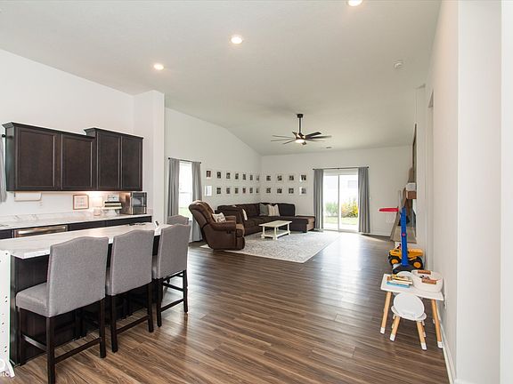 Beautiful 3 Bedroom/2 Full Bath home situated on quiet cul de sac. Only 2 years old. 9' Ceilings throughout and vaulted Foyer, Family and Kitchen. Luxury vinyl plank flooring throughout. Bedrooms and Dining Carpet. Elegant Dining Room off entry, which is also perfect for an office. Staggered height cabinets in kitchen, Stainless Steel Appliances include Microwave, Dishwasher, Range and Refrigerator. Primary Suite features trey raised ceiling, ceiling fan and double bowl vanity, pullman height counters, upgraded shower with glass doors and walk-in closet with custom built-in shelving. Laundry room features cabinets and Washer and Dryer included. Conveniently located minutes to downtown Shelbyville and I-74.