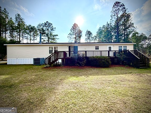 Country living is in demand and this one is truly a RARE gem! Updated, affordable, and meticulously maintained. Tucked away on 3.07 private acres with no city taxes, this beautifully updated 4BR/2BA home offers the kind of peace you can feel the moment you turn onto the property. With an estimated 2,432 sqft spacious living, a breathtaking pond view, and a landscape filled with towering trees and flowering shrubs, this property is a rare blend of serenity, privacy, and convenience-all just about 12 miles from downtown Dublin. Picture mornings on the huge back deck, coffee in hand, listening to the birds, and watching deer move through the trees -- taking in the quiet that only the country can offer. The yard is lush and inviting, dotted with mature and fruit-bearing trees including pomegranate, peach, magnolia, pine, catalpa, black walnut, and crepe myrtle, plus beautiful flowering shrubs that create scenic views in every direction. Inside, the thoughtfully designed split floor plan combines comfort and functionality with new flooring throughout,. This home is meticulously clean and well maintained - truly move-in ready. The primary suite features an oversized bath with a soaking tub, separate updated tiled shower with handicap-equipped features, dual vanities, and a large walk-in closet. Three additional bedrooms and a full bath are located on the opposite side, offering excellent privacy for family or guests. The kitchen is open and welcoming with abundant cabinetry, a large island, an eat-in breakfast area, and a separate formal dining room-perfect for hosting. The spacious living room centers around a cozy gas log fireplace accented by a beautiful stone mantel. Outdoor living is just as impressive with a welcoming front porch, a large back deck, and multiple outbuildings. You'll love the exceptional setup for storage, hobbies, and pets: a 30x30 carport on a concrete slab with an attached 10x30 powered storage/workshop featuring a roll-up door. Two additional storage/utility buildings include a powered 10x16-ideal for tools, equipment, and projects-plus a 10x12 with a doggy door leading directly into a chain-link fenced kennel area with a concrete slab, perfect for pets. This home was previously under contract and returned to the market at no fault of the seller. It has already cleared key lender-related items including a clear well water test, clear termite letter, FHA inspection, permanent foundation with underpinning, and clear title. Private. Quiet. Breathtaking. Majestic. And just a short drive to the restaurants, shopping, and conveniences of Dublin. Must see to believe. Call listing agent for a tour! NOTE: Home's square footage is an estimate --based on 7632 dimensions shown on county tax records. Buyer to verify square footage and dimensions.