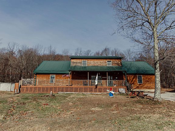 Welcome home to country living! Situated on nearly 10 acres, this wooded cabin has room for your large family and all your recreational toys. The large front and rear covered decks make for great wildlife watching. On the main floor, enjoy the open concept living, dining, and kitchen with a large breakfast bar. Also on the first level is a full bath, laundry room and a large master suite with plenty of closet space. Upstairs is equipped with 5 spacious bedrooms and a full bath. Convert the man cave back to an attached garage or finish the space to make your ideal recreation room. Property includes a detached 2+ car garage, 3 out buildings/lean-to and plenty of room for your animals to roam.