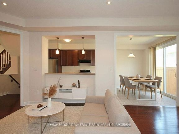 Welcome to this Monarch-built Bronte Creek townhome - where comfort, style, and convenience meet. Surrounded by lush greenery and steps from Bronte Provincial Park's scenic trails, this spacious 3-bedroom home sits on a quiet, family-friendly street.The open-concept main floor features 9-ft ceilings, dark-stained hardwood floors and stairs, pot lights, and a cozy gas fireplace in the living room. The eat-in kitchen offers stainless steel appliances, ample counter space, and direct access to a large patio - perfect for outdoor dining and entertaining. Upstairs, the generous primary suite includes a large walk-in closet and a luxurious 5-piece ensuite with dual vanities and a relaxing soaker tub. Convenient second-floor laundry, a large linen closet, and thoughtful layout make everyday living effortless. Additional highlights include inside garage access, a fully fenced backyard, and move-in-ready finishes throughout. Ideally located near top schools, Bronte Park, walking trails, major highways (QEW & 407), and the GO Station - this home truly has it all!