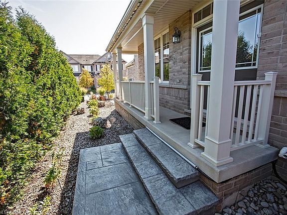 Once in a while a property comes along that ticks all the boxes....this 3 bedroom, 3 1/2 bath freehold Monarch built townhouse will not disappoint. End unit, maintenance free yard backs on to green space. Stamped concrete patio, custom made "Shade sail", hot tub, patio lights, and fully fenced yard. This beautiful setting will provide the perfect backdrop for entertaining family and friends. The interior is tastefully decorated and move in ready. Large principal rooms with 9 foot ceilings on main level - separate dining room, living room with gas fireplace and high end appliances (Jenn Air) and Caesarstone counter tops in kitchen, which overlooks the spectacular yard. Upper level has open concept family room with hardwood floors, three large bedrooms (2 with walk in closets), five piece master ensuite with granite counter tops and views of the greens space from master and ensuite. Lower level is finished and could accommodate a 4th bedroom or simply use as a recreation room. There is a two piece bathroom and a separate steam shower plus plenty of storage. Double car garage . Close to Bronte Creek Provincial Park, a short drive to Bronte harbour and near to the hospital, schools and transportation. Quiet enclave in Bronte Creek neighbourhood. Low condo fee of $63.00 for visitor parking and common elements only. Washer and Dryer purchased February 2021.