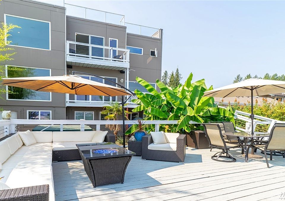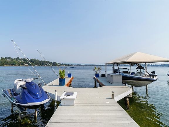 Luxury Gated Lakefront Home at Water's Edge! Embracing the Best of Waterfront Living,this Gorgeous home redefines the Contemporary Design & Upgrades! Incredible Lifetime Lake & Mountain Views from All Main Areas! Over 50ft Low Bank Waterfront w/Private Dock,Large Entertaining Deck & Hot Tub!Rarely found Amazing Roof Top Deck w/Unbelievable Views! Spacious Open Floor Plan,High ceilings,Rich Hardwood Floor! Master w/Jetted Tub & Private Deck! Large Basement w/Wet Bar,Full Bath & Separate Entrance!