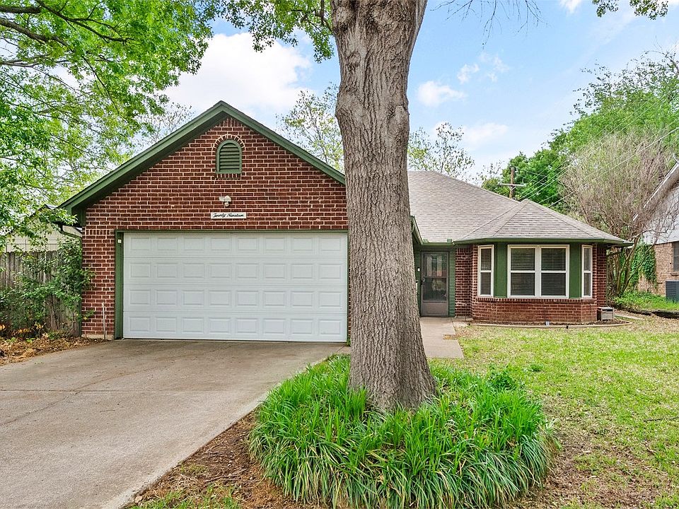 Check out this charming 3 BR 2 Bath home in the heart of Arlington right off of famous Waggoner Drive before it’s gone! This coveted neighborhood in Arlington ISD will feel like home soon as you pull up to it’s large trees and mature landscaping. Once you step inside this adorable home you will fall in love with the family friendly layout. Features include huge open living space with a brick wood burning fireplace to gather around, plus large dining space just off the living room that can be used as a flex room-office space. Beautiful simulated wood floors in main living, cheery & bright color palette with lots of natural light. Oversized kitchen has plenty of counter space and cabinet storage. Over-sized primary bedroom suite with trey ceilings, large bathroom with double sinks, & walk-in closets! Large secondary bedrooms have walk-in closets as well. Step outside to the covered back patio and large back yard to grill out with friends & family all summer long! Welcome Home!