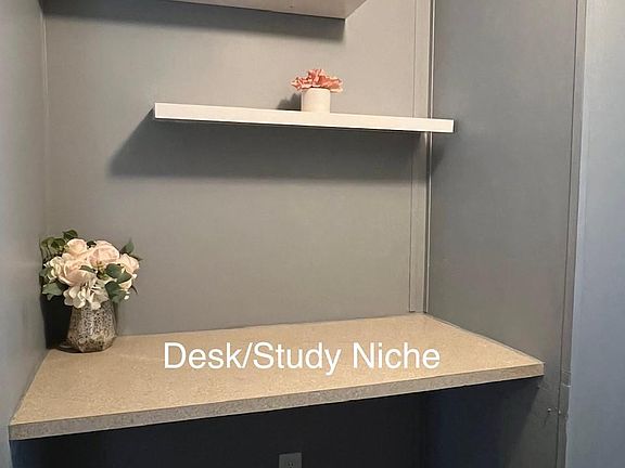 Freshly remodeled 6/2023. New LVT flooring and Tile in baths. New toilets, two sink vanity in Master Bath with separate garden tub and shower. Computer/office niche near laundry room, lots of cabinets for storage. Private shed for storing bikes and lawn equipment. Deck for entertaining or relaxing at the end of a long work-day. Quiet community near Valley Rach which boasts a movie theatre, water park, shopping, restaurants and more.