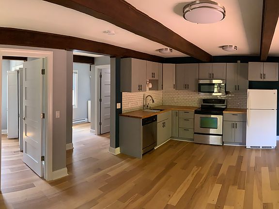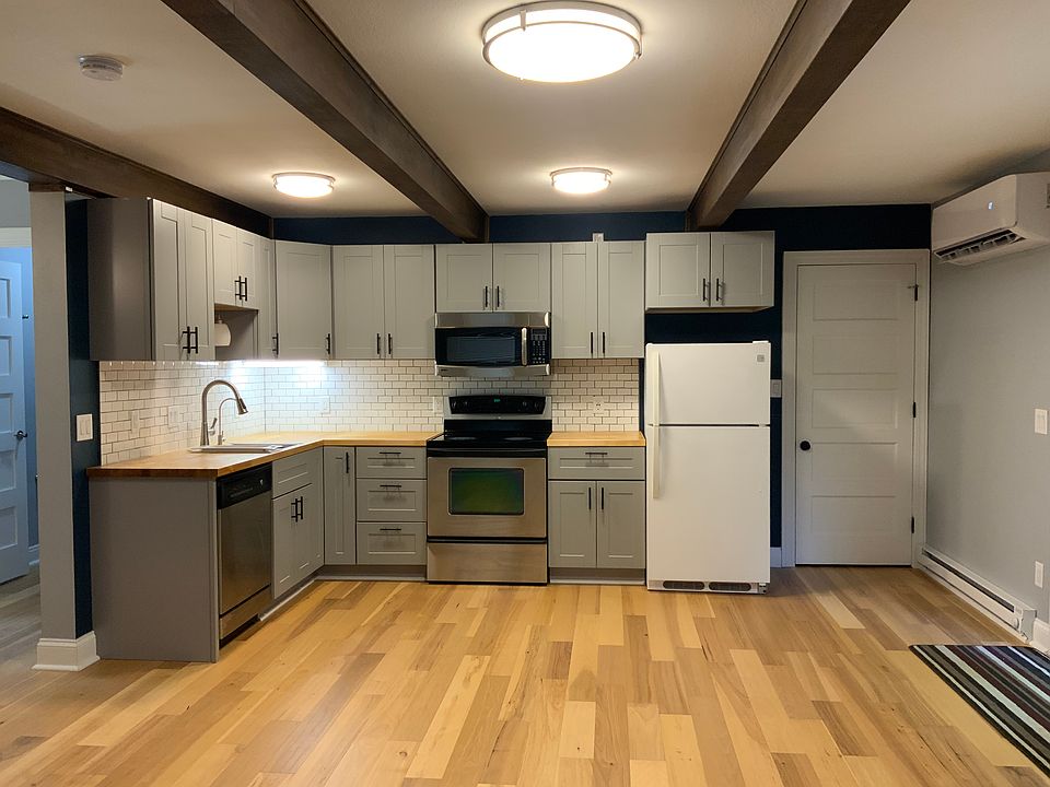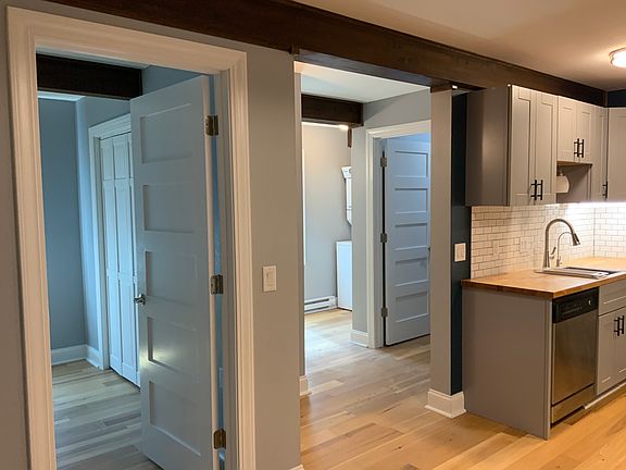 Newly renovated apartment in residential neighborhood, just a block from Main Street in Mount Horeb. This apartment is unique, boasting a quiet neighborhood, large private deck and garage parking. Just a short walk to the Military Ridge bike trail, the Mount Horeb Farmers Market, and downtown businesses our apartment give you the amenities of an apartment complex without the cookie cutter feel and multitude of neighbors. All new appliances including private laundry, and air conditioning. Cats allowed, and water utility is included in rent. Available starting October 1st. This is a duplex style apartment, with the owners living adjacent to the unit. With a one car garage and private entrance. The bedroom boasts a multilevel closet organizer system and can comfortably fit a queen size bed or smaller. Please note king sized beds would not be able to fit in this room comfortably. Owner pays for water. Electric utilities the responsibility of tenant. Lawn care and the majority of snow removal is the responsibility of the Landlord. Cats allowed for additional $25/month/cat with refundable $300 pet deposit. First months rent and security deposit due upon signing the lease. Rental application filled out through Zillow. No smoking. 1 stall garage and 2 off street parking spots in driveway available.