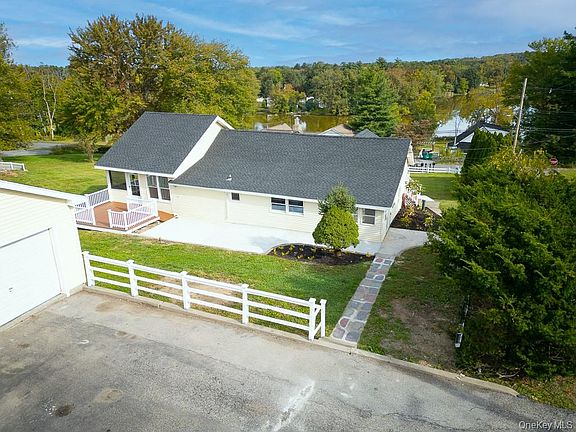 Warm and inviting Ranch with Hillside Lake Views – Move-In Ready! Welcome to this beautiful ranch-style home situated on a spacious corner lot with breathtaking Hillside Lake views. This property offers the perfect retreat from the busy pace of life — a peaceful haven where stress simply melts away. Designed for easy one-level living, this home lives like a three-bedroom and features a bright, open-concept layout combining the living room, dining area, and kitchen. The updated kitchen showcases gorgeous granite countertops, stainless steel appliances, and solid wood cabinets — ideal for cooking and entertaining. The spacious primary bedroom includes its own full en-suite bathroom, complemented by a generous second bedroom and a versatile family room/guest room — all with brand-new flooring throughout. Step outside and enjoy a beautifully landscaped, level corner lot, offering ample outdoor space for relaxation, gatherings, or recreational activities. You’ll love the separate screened-in sunroom, perfect for enjoying warm summer evenings. A true bonus is the oversized 2-car detached garage with a spacious driveway, providing plenty of parking and storage. Additional upgrades include a new roof, fresh paint, updated flooring, enhanced landscaping, side patio, and more! Central A/C ensures comfort year-round. Conveniently located near the Taconic State Parkway, this home offers both serenity and accessibility. Don’t miss this incredible opportunity — a must-see property that combines comfort, charm, and location!