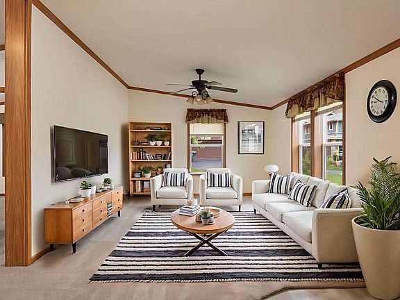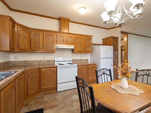 Centrally located and move-in ready! This 2011 modular home sits on a spacious 1/3 acre city lot just minutes from the hospital and all local amenities. The home features an efficient layout with comfortable living space and modern finishes throughout. Enjoy the convenience of a concrete crawl space below for extra storage and a heated, drywalled detached garage--perfect for year-round use. The new driveway adds great curb appeal and functionality. A rare find combining newer construction, a large lot, and a prime location in the heart of town!