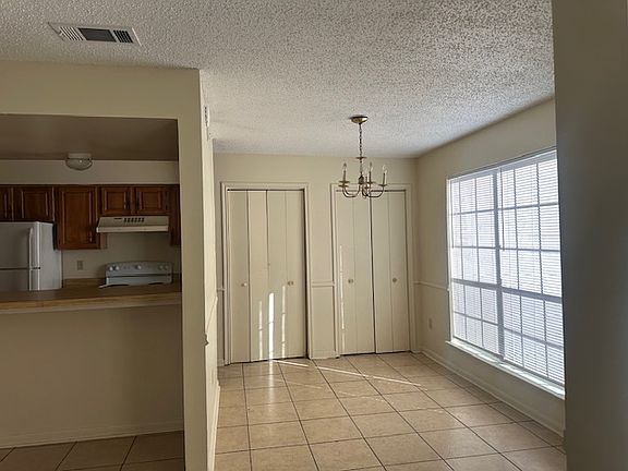 Cute two bedroom two and a half bath townhome. Tile in downstairs and upstairs bedrooms. Downstairs has kitchen, living room, dining room and half bath for guests. Upstairs there are two spacious bedrooms with large closets, each bedroom has a full bath.