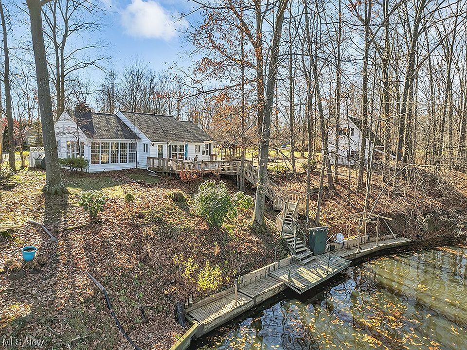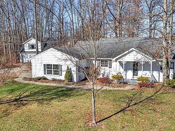Offering a Waterfront Ranch Home with attached Garage and with a Second two-story Garage. This great large property of 3 lots on lake Roaming Rock is a rare find with over 200' road frontage. A wooded area abundant with hardwood Oak and Hickory trees is ripe for kids to explore down to the private protected cove. Access from the driveway or from the Kitchen, is a large Deck and Stairs that leads down to a private boat dock with beautiful views out to the lake. Located on a Cul-de-Sac and desirable neighborhood area because of close proximity either south to the Clubhouse, Pool, Beach, Pickleball Courts, and for special events. And, to the north a close distance to the Marina/Supply store, Boat ramp and Paradise Bay Restaurant. The home is in good livable shape but in need of updating. Offering a large open Kitchen with Dining area and then to the Living Room with a wood burning Fireplace. The wall-to-wall windows offer wonderful views out to the lake. The Laundry was moved from the basement to the Mudroom off of the attached 2-car Garage on the main level by the Kitchen. There are two Bedrooms on the main level, one with attached bath. A second bath is off the main Hallway. Downstairs is a very large room as a game room and used as additional sleeping areas for family when visiting. A second Family room, has a fireplace. A Utility or Work Room provides additional storage area for items such as Summer lake toys and Boating equipment. The Second 2-car separate Garage cannot be missed as you enter the circular driveway. The ground level includes a room that has the potential for many uses such as a private work-from-home office or kids game room. But there's More! The large open upper level is ripe for finishing out for additional fun living space. This Garage also includes additional land next to it. Three, (3) Consolidated Lots not often available. There is a 4th Vacant Lot #205 available with this sale. Cross reference MLS#5009686 for additional information.