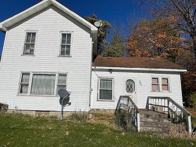This farm house is in the village but has a country feel with large rooms and an open floor plan.  SOLD 'AS IS'.  Needs renovation. Buyers should consider a renovation loan and Seller will provide more information.  Large trees shade the 3/4 acres with the 28 x 30 pole barn sitting to the back.  Seller will look at all offers. Age is estimated.