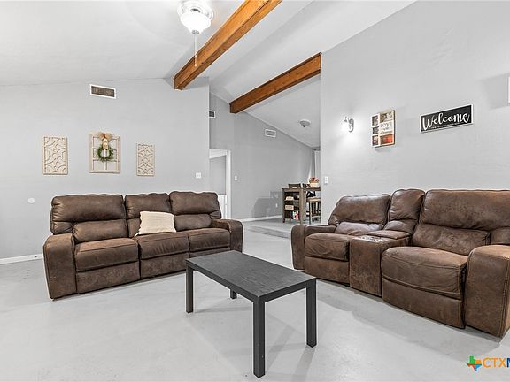 Welcome to this charming 2-bedroom, 1-bathroom home that perfectly blends comfort and convenience. Step inside to a spacious living room that flows seamlessly into the connected kitchen and dining area—ideal for both entertaining and everyday living. The home features a large bathroom with dual vanities and a stand-up shower, plus a laundry closet in the hallway for added ease. Storage is plentiful with generously sized closets throughout. Outside, enjoy a large backyard that’s perfect for kids, pets, and gatherings. Relax on the covered front porch or take advantage of the oversized carport, offering ample space for multiple vehicles. Centrally located, this home is less than 3 miles from the Gatesville Square, just 2 miles from Fort Hood, and an easy drive—40 minutes to Waco and 35 minutes to Temple. This property offers both small-town charm and quick access to larger city conveniences—making it the perfect place to call home.