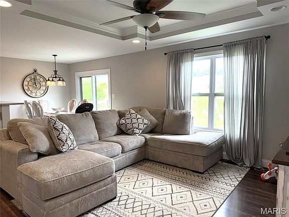 COULD BE YOURS - Welcome to 202 Boardwalk Ct. This 3-bedroom, 2-bathroom ranch home features an open floor plan in a growing, charming neighborhood. The entry foyer opens to a large family room with a tray ceiling and crown molding, abundance of lighting, and laminate floors. Main floor laundry as you enter in from the two-car garage. The kitchen boasts a large breakfast bar, desirable granite counter tops, white cabinets with crown molding and stainless-steel appliances, refrigerator will stay. Dining room has lots of natural lighting where you can walk out the sliding glass doors onto the deck. Master suite has walk in closet, and a full bathroom. Security System includes open glass alarm on every window, motion detectors upstairs and one in basement, open door and window alarms throughout. Ring Camera at front door. The lower level is a 9' pour, full rough in for a future bathroom and a walkout door onto a 12x10 patio with a fenced back yard. SHOWINGS START SUNDAY, JUNE 8th. Schedule your showing today.