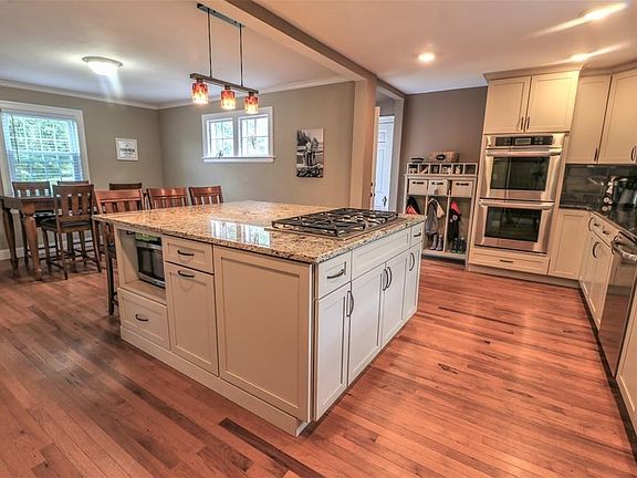 - Kit Dscrp: Flooring - Hardwood, Countertops - Stone/Granite/Solid, Cabinets - Upgraded, Kitchen Island, Stainless Steel Appliances, Recessed Lighting, Remodeled, Gas Stove, Lighting - Pendant