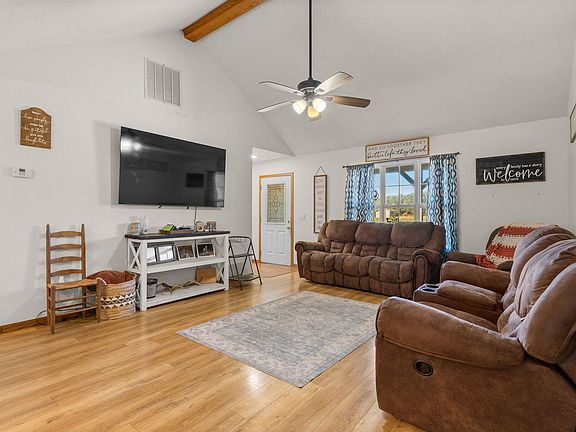 JUST ON THE EDGE OF TOWN! This 3 bedroom 2 bath home sits on over 3 acres just minutes out of the city limits. Offering a long driveway with the perfect setting and a great mixture of woods. The open floor plan vaulted ceiling home with just the right upgrades will fit almost any new buyers needs and desires. The master suite offers a private bath with a walk in closet. Only 35 minutes to Springfield, and located in a small and growing community. Will make this your next stop on your house hunting journey.