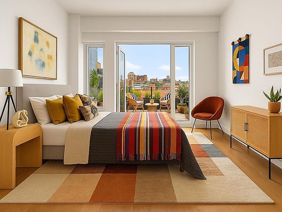 Introducing 6F at 202 Broome – A stunning 2-bedroom, 2-bathroom residence featuring a private terrace (approx. 300 SF) with expansive views to the east, west, and north.