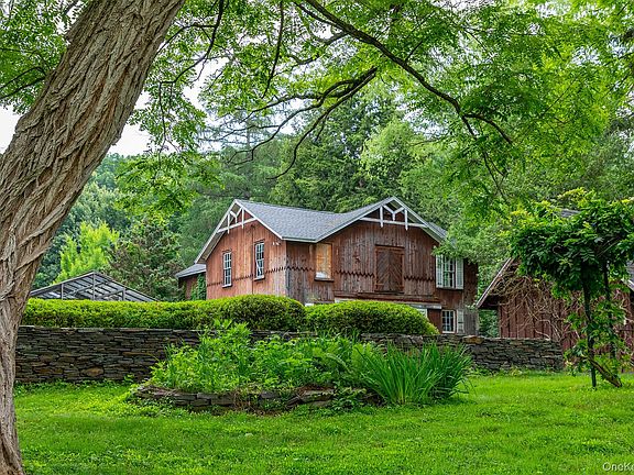 This historic house is a timeless beauty. Ice skate on the pond, garden in the greenhouse, and fish and swim in the creek, which borders the property on its south side. Looking for a meditative practice? Stroll the orchard, practice your art in one of the many outbuildings perfect for a studio, or read a book in your very own library. The kitchen, with its huge picture window, is always sunny, and the bedrooms are well-sized, each with their own view of lush garden beds, stone walls, gravel paths and hedges. Enjoy Old-World charm (wide floorboards; stacked-stone exterior; an enormous brick fireplace) while being comforted by modern luxuries (new windows; re-modeled bathrooms; and a kitchen with quartz countertops, a cast-iron sink, and deVOL fixtures). Come and enjoy the view - weeping willows, 300-year old maple trees, and other rare specimens abound. A rare Hudson Valley find, this home has to be seen to be understood.