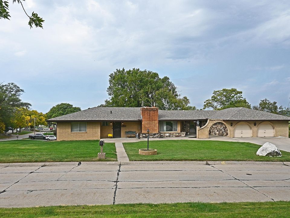 This 5,000 sq. ft. four-bedroom brick ranch home is located close to schools, parks, and shopping centers. The spacious living, dining, and kitchen areas boast large windows, a stone fireplace, and ample cabinetry and counter space. All appliances stay. The private primary suite features extensive windows, a full bath with double sinks, and a sauna. The walk-out lower level provides flexible options for entertaining, a home business, exercise/fitness area, adding a third garage, and more. New Roof and Gutters 2025. Additional parking is available at the back of the property, along with areas perfect for a patio and garden. Don't miss this opportunity!
