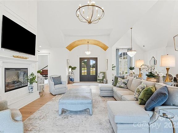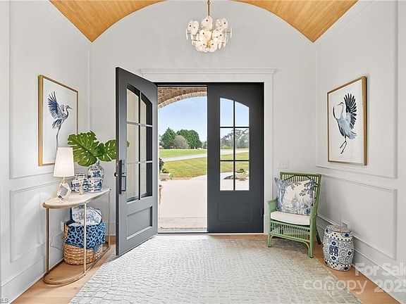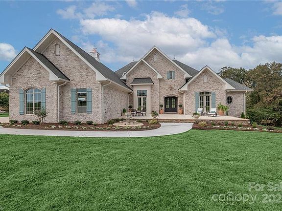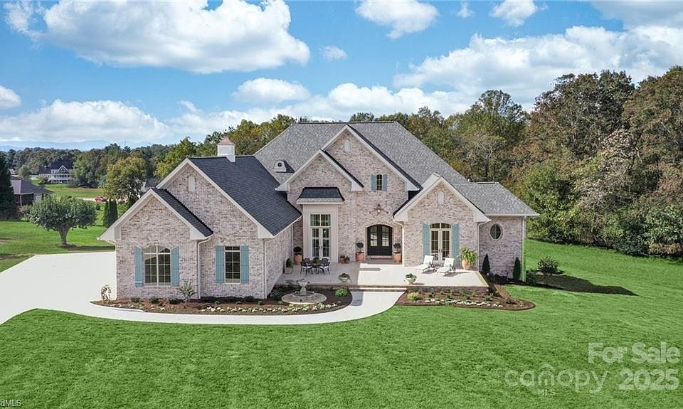 Canterbury Estates—custom from the brick exterior and iron front door to 8’ interior doors with fine molding details. A thoughtful plan centers on a chef’s kitchen with 48" gas range/oven, custom cabinetry, marble countertops, & an oversized island opening to a bright great room with an electric fireplace. Pella windows, remote shades, Thibaut wallpaper, motion-activated lighting, a custom coffered ceiling elevates the main level, which also offers a piano room & a guest suite with its own laundry. Step outside to a covered porch with a full outdoor kitchen: gas grill, Medallion/Char-Broil station, & fridge/cooler—ideal for meals or gatherings. The triple, oversized garage includes an EV charger; the open basement adds extra garage space and plumbing rough-in for a future bath. Extensive professional landscaping frames this corner lot. Professionally designed and decorated; custom furnishings and window treatments may remain with an acceptable offer. Turnkey luxury in North Wilkesboro.
