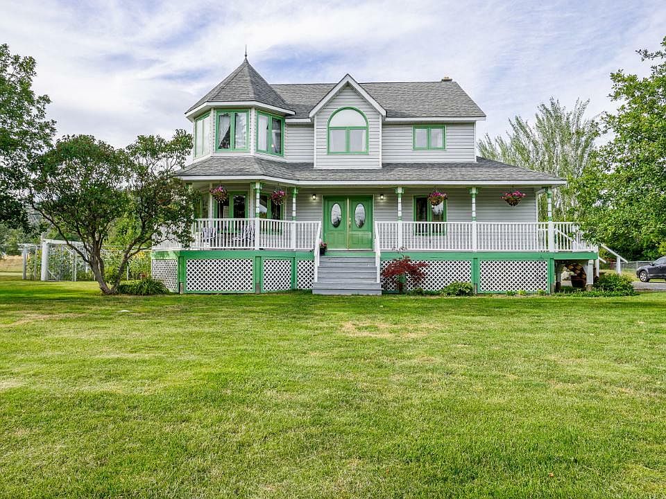 This spacious and inviting home boasts a cozy kitchen with ample counter space and a wood burning pizza oven, creates a warm and inviting atmosphere for family and friends. Spacious master bedroom with ensuite and walk-in closet. Just off the kitchen is a convenient main floor laundry/mud room and a cozy office space with ample natural light. The basement, with tons of storage space, is perfect for an in-law suite or Air BnB! Complete with a newer roof, HWT, u/g irrigation, H20 softener & purification system, wood storage & shed with greenhouse. A spacious property boasting hardwood flooring, crown molding & wrap around porch characterized by decorative wood trim. Perfect for enjoying morning coffees or evening sunsets! A sprawling yard with plenty of space for outdoor activities, gardening, or simply enjoying the fresh country air. This unique home is a must see to appreciate all it has to offer! *Measurements are app, if important buyer to verify*