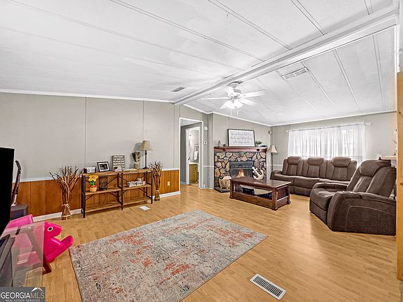 Welcome to your dream sanctuary, a beautifully renovated 3-bedroom, 2-bath modular home that is truly move-in ready! Set on over an acre of lush, level land, this charming residence combines modern amenities with serene outdoor living, making it the perfect place to call home.As you step inside, you'll be greeted by an open and inviting layout featuring new flooring and fresh paint throughout. The heart of this home is the huge country kitchen, complete with a large island that offers ample seating-perfect for casual meals and entertaining. The oversized living room provides plenty of space for relaxation or gatherings, creating a warm and welcoming atmosphere for family and friends.The spacious master suite is a true standout, boasting dual sinks and a huge walk-in shower, creating your personal oasis for relaxation. The two generous secondary bedrooms also offer large closets, ensuring ample storage. The flow continues to the expansive living area, seamlessly leading to the covered front deck and a massive back deck-ideal for entertaining. The fenced-in backyard provides privacy and security, perfect for pets and outdoor activities.Additionally, this property features a 12x30 workshop for hobbies or extra storage, enhancing the functionality of the outdoor space. Enjoy the peace and charm of country living while being just minutes away from local conveniences.This stunning home combines modern comforts with the beauty of nature, making it a rare find in today's market. Don't miss the opportunity to make this delightful home your own-schedule a viewing today and experience the magic for yourself!