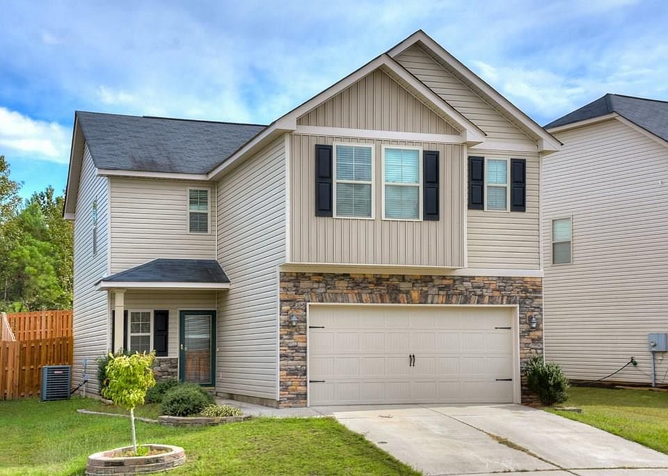 This great home features an open floor plan, great room with corner fireplace, kitchen with granite counters, tiled backsplash, recessed lighting and stainless steel appliances the includes refrigerator. All bedrooms, loft area and laundry room upstairs! Owner's bath with garden tub, separate shower, dual vanity and oversized walk-in closet. Front and back yard sodded with sprinkler system. Neighborhood amenities include clubhouse, pool, playground and walking trails. Hidden Creek is close to schools, shopping and Patriots Park!