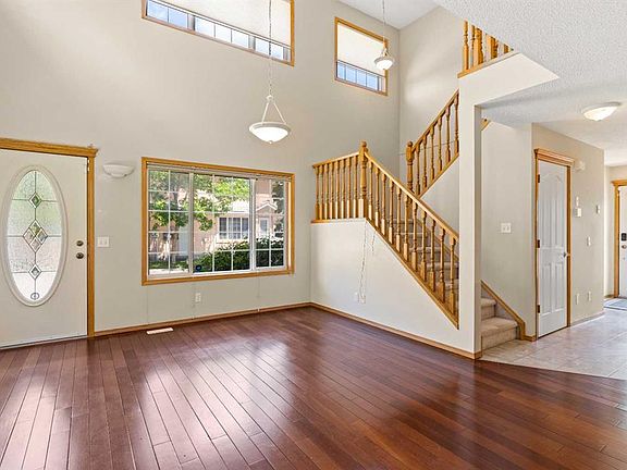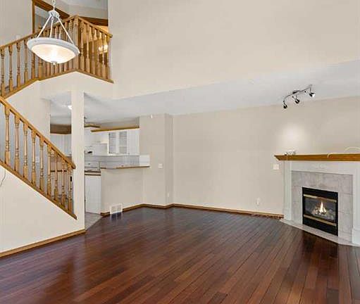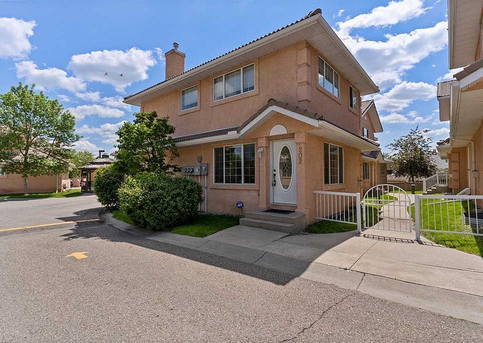 Welcome to this Gorgeous cul-de-sac town home in a gated community with a total living space of 1,270.32 st ft in the popular lake community of Coral Springs. Pride of ownership is evident in this well-kept 2 bedrooms + den, 2.5-bathroom end unit family home with an attached garage and a full driveway situated in a private gated community of Coral Cove Estates. Enter into a bright & open main floor with stylish high ceiling open to below for that airy feeling, windows throughout providing plenty of sunshine, a chandelier, and stunning cherry-stained hardwood flooring. The layout is fantastic with a Sunny living room with a cosy corner fireplace, next to the dining area overlooking the crisp white kitchen featuring ample counter space, lots of white cabinets for storage and modern kitchen immaculate appliances. The door in the kitchen leads to a concrete patio perfect for BBQs. Rounding out the main floor is the convenient laundry room and the guest bathroom. Upstairs, you’ll find a huge Primary bedroom with a walk-in closet and 4-piece ensuite, an additional bedroom with good closet space and a full bathroom. The basement is wide open feature. It is a family room ideal for late-night family bonding, a den for extra accommodation or you can convert it to your private home office plus plenty more extra storage space. Out back is your private patio & BBQ area. You’ll have an attached garage with more room for storage and work area plus a full driveway and lots of parking space for guests off-street. As a resident, enjoy a quiet neighbourhood and security as there are CCTVs monitoring common areas. You will also have access to the lake, beach, tennis courts, fishing and boating and many more amenities. Excellent maintenance and snow removal crew and Keyed access to waste disposal shed. Spectacular location! Steps away from the community’s private lake, Circle K, schools, shops, Stony Trail via McKnight Blvd and more. Don’t miss out on your chance to live in this premium complex!
