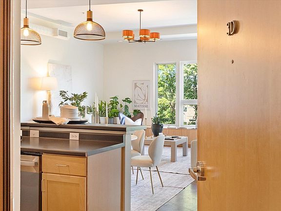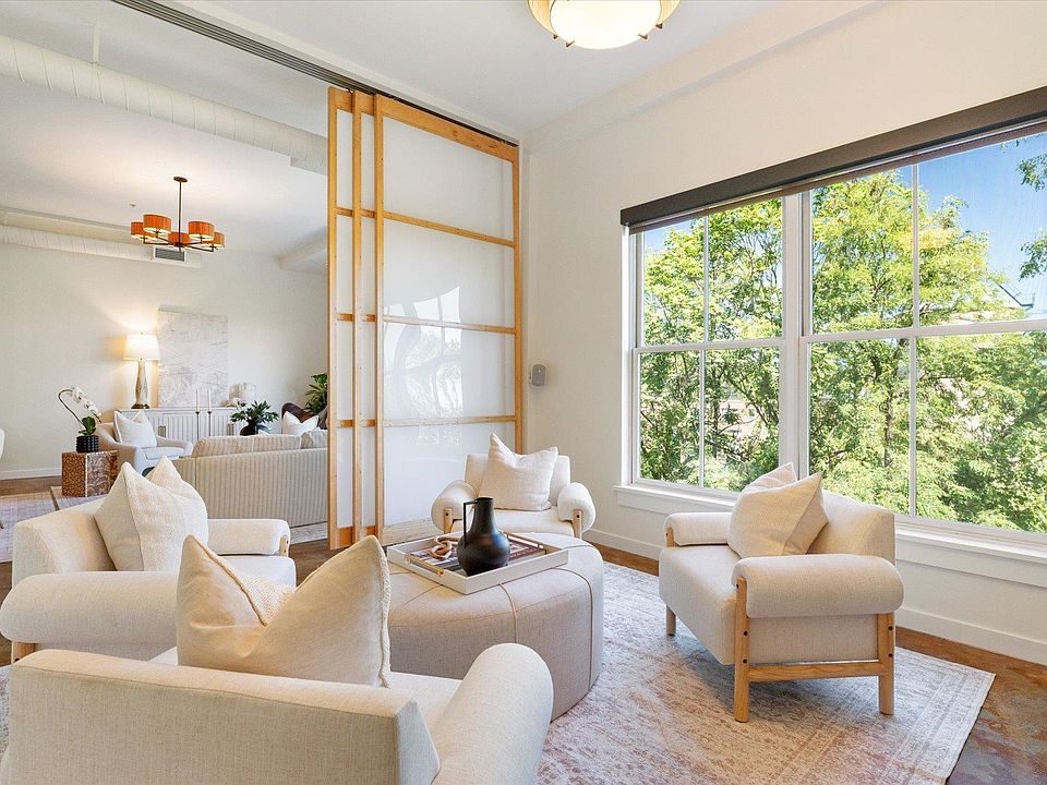 OPEN HOUSE 10/4 Chic and contemporary, this two-story condo in Belmont Lofts combines modern design with an unbeatable location. The main level features soaring ceilings, an open-concept floor plan, and expansive windows framing both urban and verdant views. The kitchen and living area connect seamlessly, while custom Shoji panel flex walls provide the option for a den or main-level bedroom. Finishes include concrete, hardwood, and ceramic tile flooring, maple cabinetry, and fresh updates with new paint and appliances throughout. A bright stairwell leads to the private rooftop terrace—perfect for entertaining or relaxing above the city. Upstairs, the spacious owner’s suite offers a walk-in closet, additional hall closet, and a full bath. This unit includes a secure storage area, one assigned indoor garage space within a gated entry, plus an extra unassigned outdoor parking spot. Association fees cover trash and recycling, water, sewer, gas, and all exterior maintenance for truly low-maintenance living. Set on several landscaped acres with its own courtyard and gardens, this community provides a private retreat in the heart of Charlottesville—just a short walk to Belmont’s shops and restaurants, IX Art Park, and the Downtown Mall.