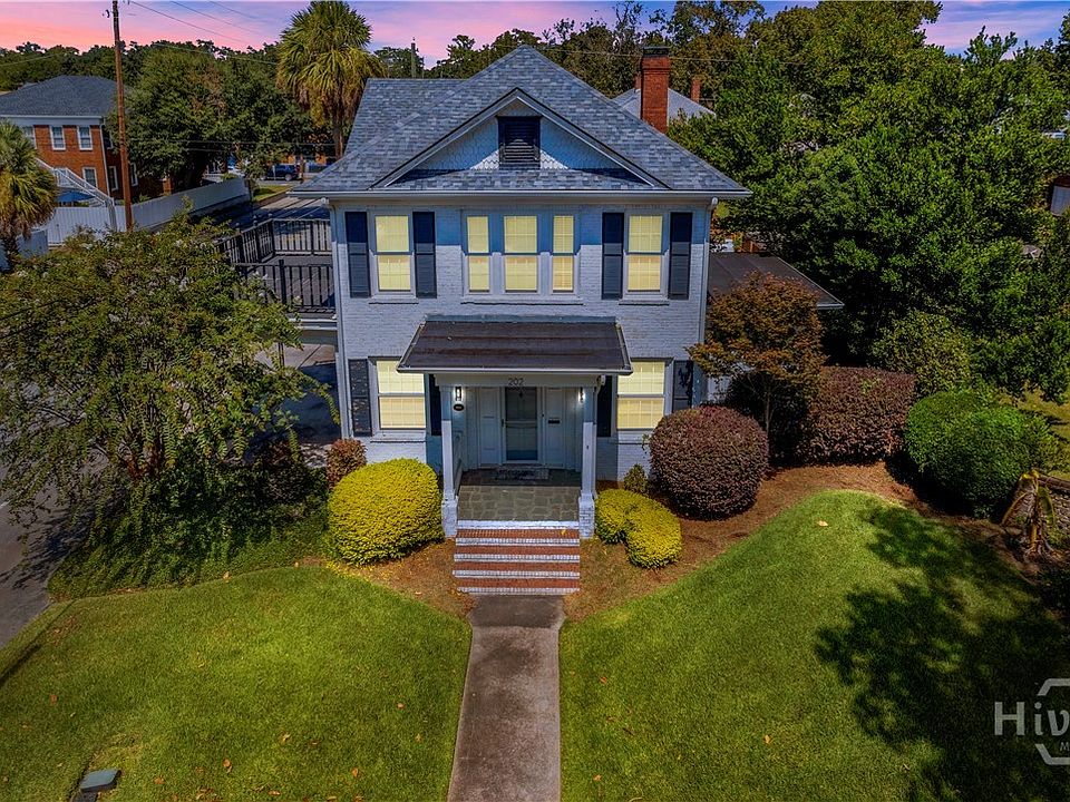 Built in 1921, this historic Ardsley Park corner-lot home blends timeless charm with modern updates. The 3-story main home offers 4 bedrooms, 2.5 baths, original hardwood floors, 4 fireplaces, abundant natural light, and a beautifully remodeled kitchen with modern finishes. All bedrooms are upstairs, while the first floor features a welcoming office/study and a formal dining room perfect for gatherings. Outside, enjoy a private swimming pool and garden terrace oasis, surrounded by lush landscaping, creating the perfect space for entertaining or relaxing. Above the single-car garage sits a 1-bedroom, 1-bath apartment with its own entrance—ideal as a guest suite, home office, or income-producing rental. With tree-lined streets, vibrant community spirit, and close proximity to parks, shopping, and downtown Savannah, this property offers a rare opportunity to own a piece of history updated for modern living in one of the city’s most desirable neighborhoods. Schedule your appointment today!