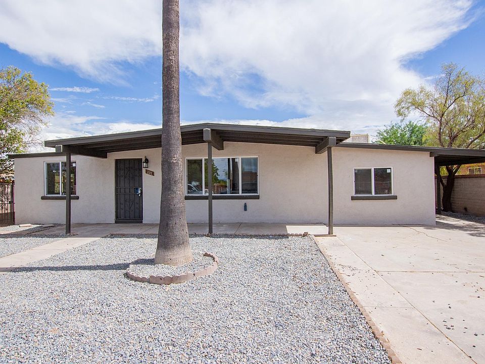 Fantastic remodeled mid century home available in south Tucson. 4 bedrooms, 2.5 bathrooms with tasteful upgrades throughout. Gorgeous wood look flooring in all common areas and plush carpet in the bedrooms. Freshly painted with custom 2 tone paint. Stylish kitchen with a pantry, ss appliances, and lovely tile back-splash. Master bedroom includes a full en-suite with a beautifully tiled shower/tub combo. Large N/S facing lot on a quiet street. Inviting front covered patio, 1 car carport and a huge backyard with lots of possibilities. All conveniently located near freeways, schools, shopping and restaurants. This gem is available at an excellent value and will sell fast. Call to schedule your showing today. OWNER/AGENT