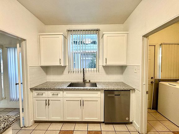 Light and bright kitchenGranite countertopsNewer white cabinetryIn-unit washer and dryer